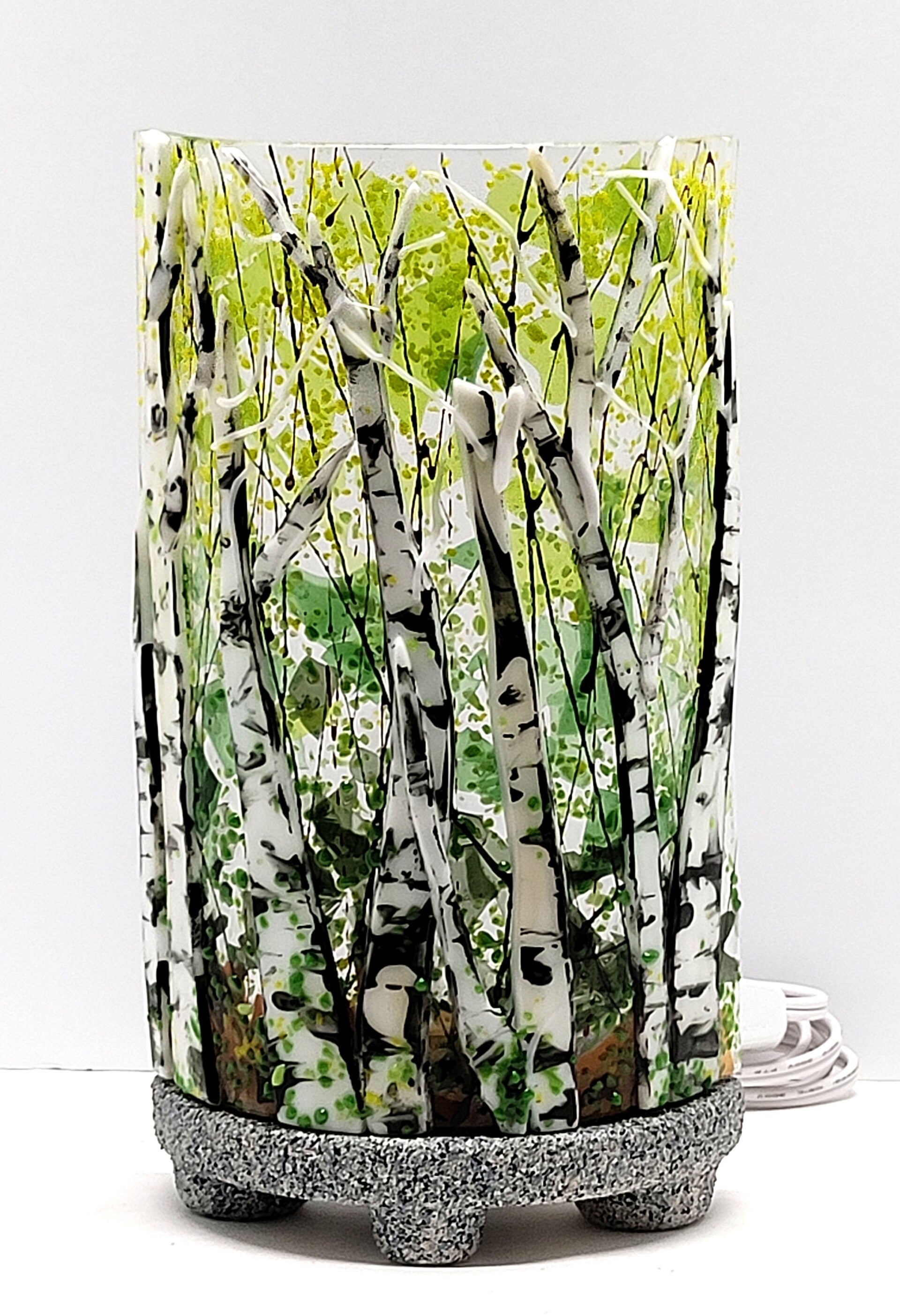 Discover our collection of handcrafted stained glass lamps, each designed to illuminate your home with unparalleled artistry. Contemporary lamps by LINK's SGC, these pieces are more than just lighting; they are statements of elegance and craftsmanship. Ceramic and or wood base with electrical cord and a candelabra bulb.